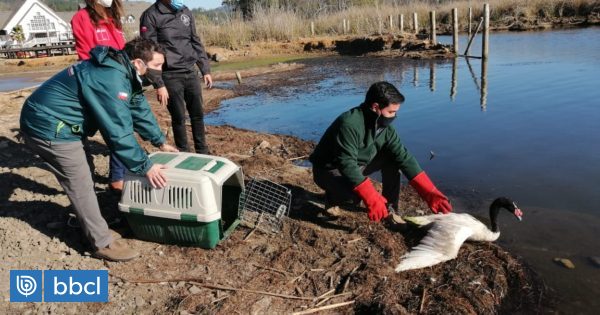 Rescatan y liberan a cisne de cuello negro encontrado en zanja de empresa en Maule