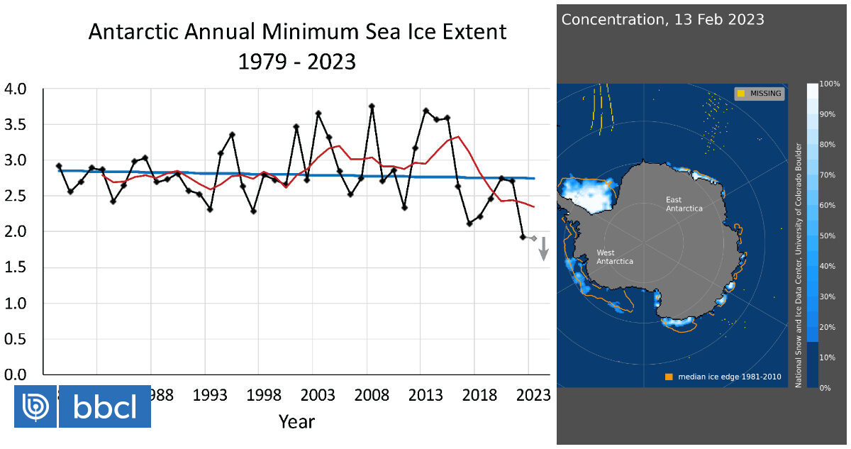 Antártica marca nuevo mínimo histórico en extensión de hielo marino y cobertura puede seguir bajando