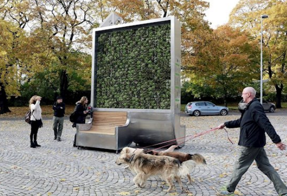 Es así como la compañía alemana Green City Solutions creó un panel transportable con paredes de musgo llamado City Tree, que permite absorber la contaminación en el aire.
