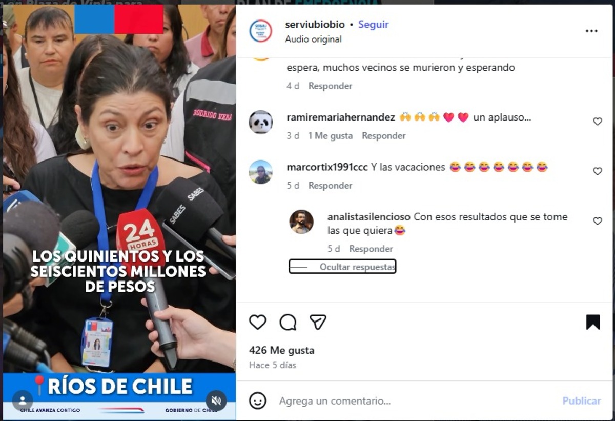 En otra publicación en Instagram del 24 de febrero, en la que participaron de manera colaborativa las cuentas de la Delegación Presidencial Regional, el Minvu, la Seremi del Minvu en el Bío Bío y el Serviu Bío Bío, también intervino el “analista silencioso”.
