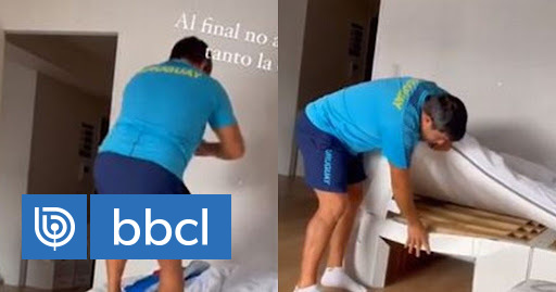 Fue el nadador uruguayo Enzo Martínez quien publicó un registro en Instagram, en que Diego salta con sus dos piernas sobre uno de los costados de la cama, provocando que esta se quiebre.