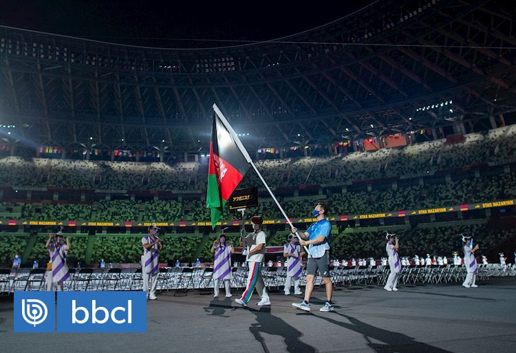 La bandera de Afganistán desfiló este martes en solitario en la ceremonia de inauguración de los Juegos Paralímpicos de Tokio en homenaje a la ausencia de los dos paratletas que no pudieron volar a Japón a raíz de la toma de poder de los talibanes.