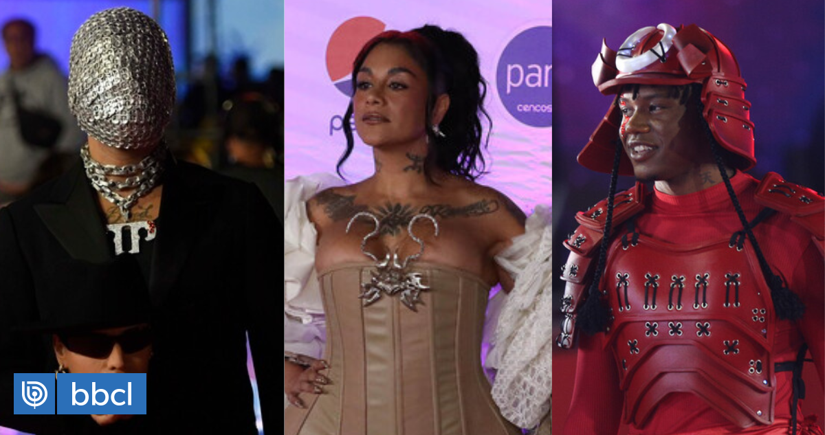 Inspirado en un samurái africano, el cantante urbano Polimá llegó enfundado en una “armadura” de un vivo color rojo con adornos en color negro y un casco del mismo color. El artista de ascendencia angoleña dejó en manos de la diseñadora viñamarina Alexia Macarena su look.