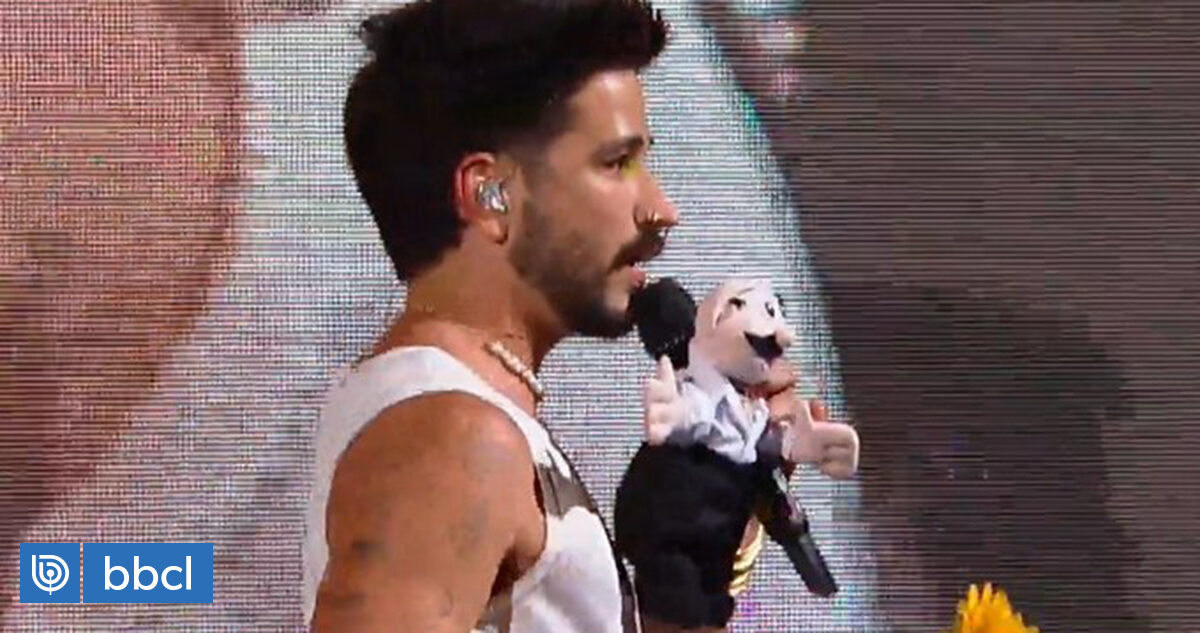 Con bigote negro incluido: lanzan peluche del Dr. Simi a Camilo en pleno show en Viña