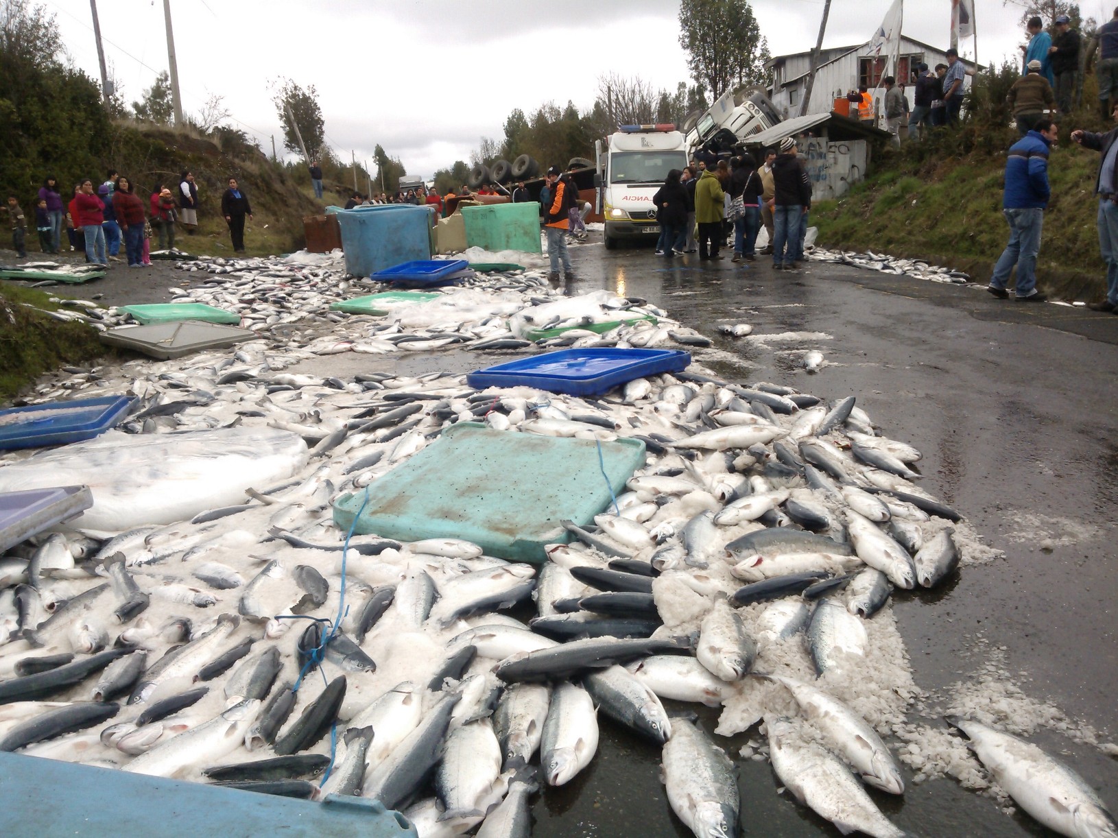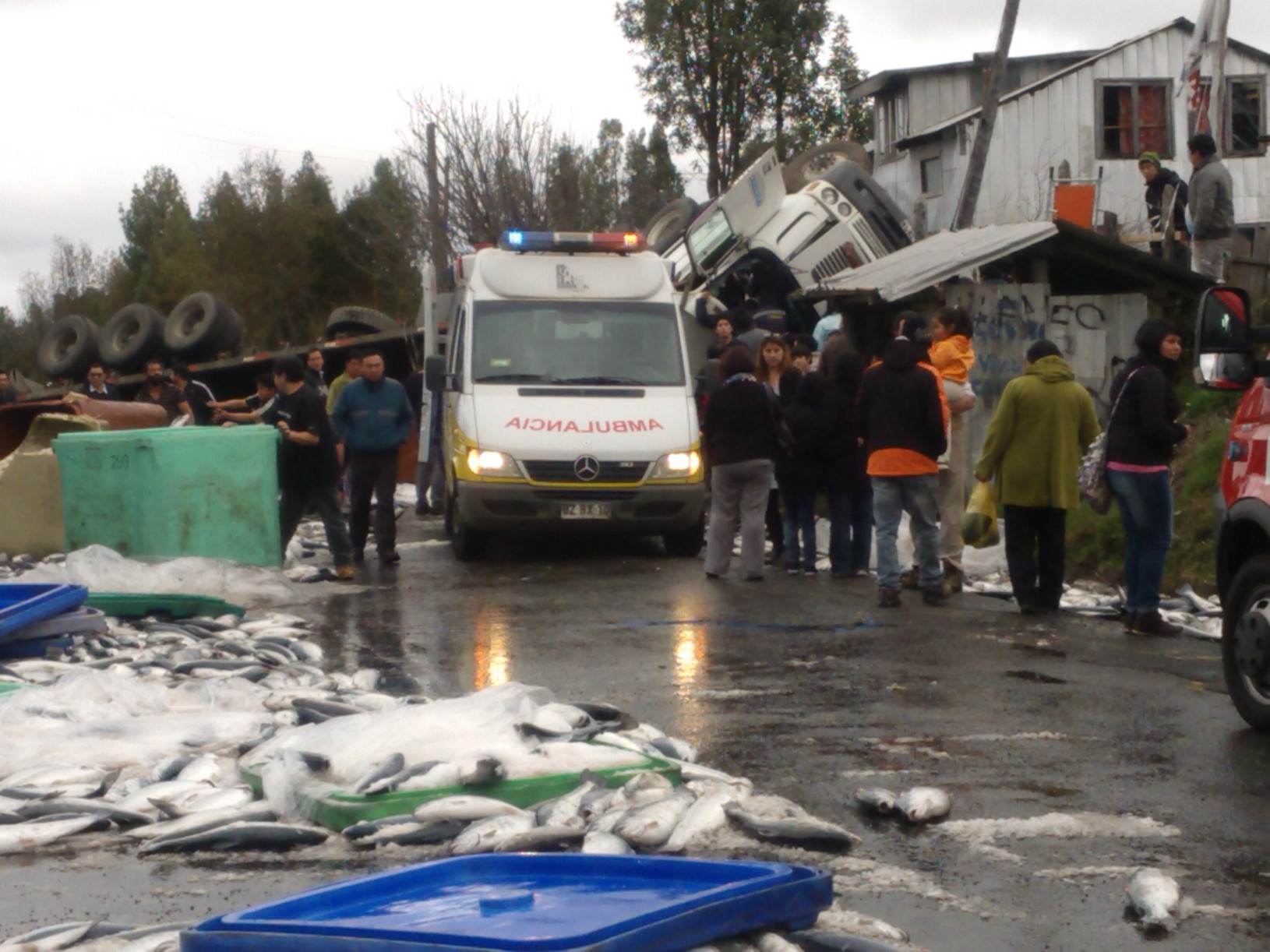 Volcamiento de camión con salmones en Chiloé deja una persona con lesiones graves