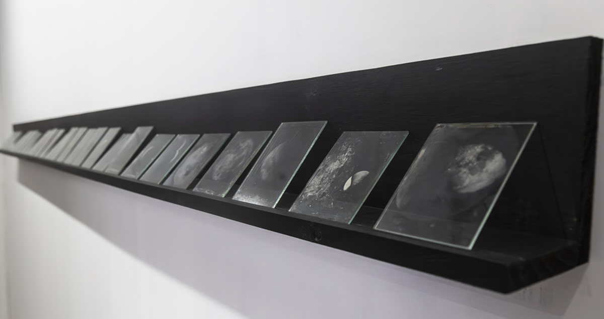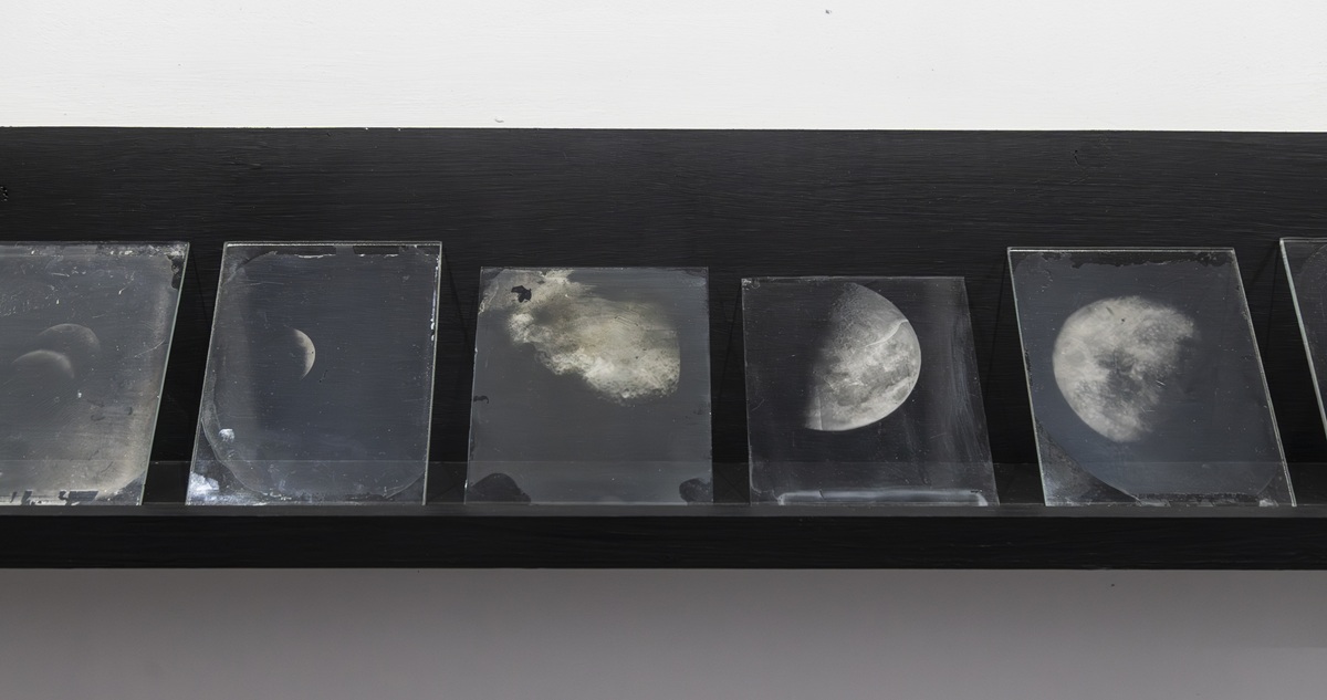 La obra se basa en la técnica artesanal del ambrotipo, en la que una emulsión líquida se aplica sobre vidrio y se revela en el momento, de modo que cada imagen es única. Estas fotografías de la luna están impresas en una cadena de vidrios puestos en hilera.