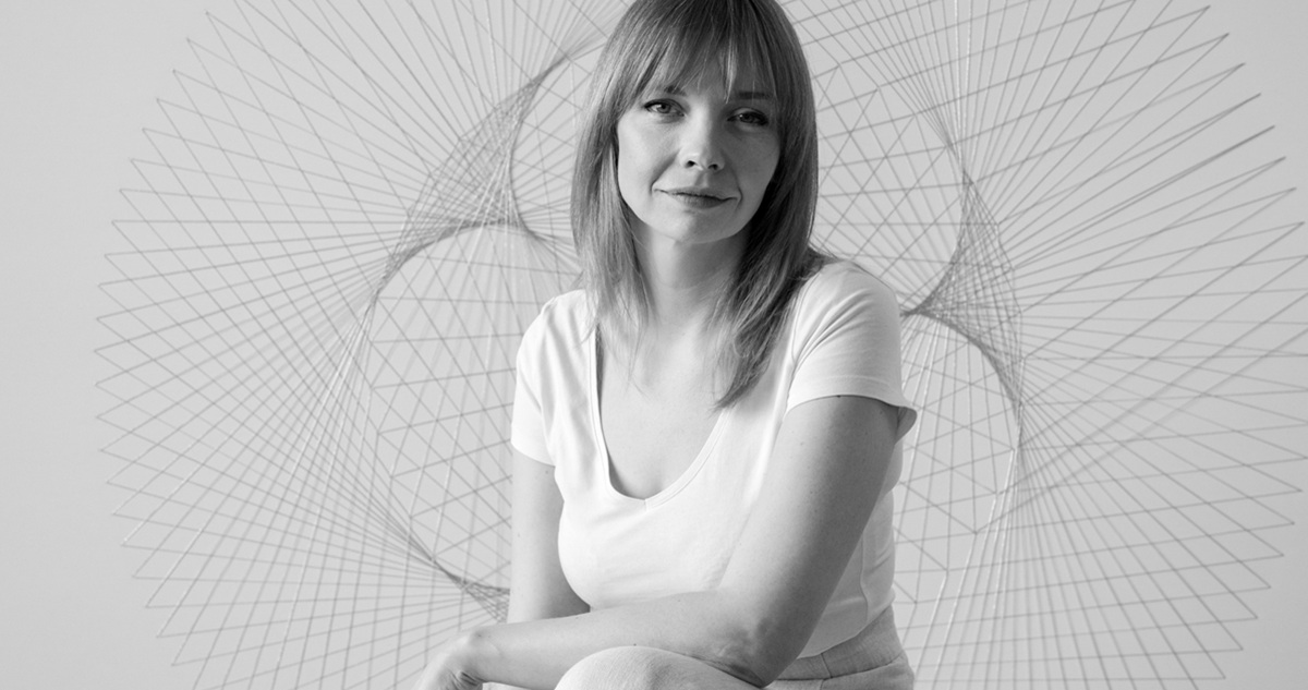 La polaca Katarzyna Tretyn utiliza hilos tensados para construir instalaciones geométricas que evocan tanto datos científicos como paisajes cósmicos. En SACO1.2 presentó El Observatorio del silencio, concebido tras su residencia en Chile y su paso por observatorios como Cerro Murphy y Paranal.