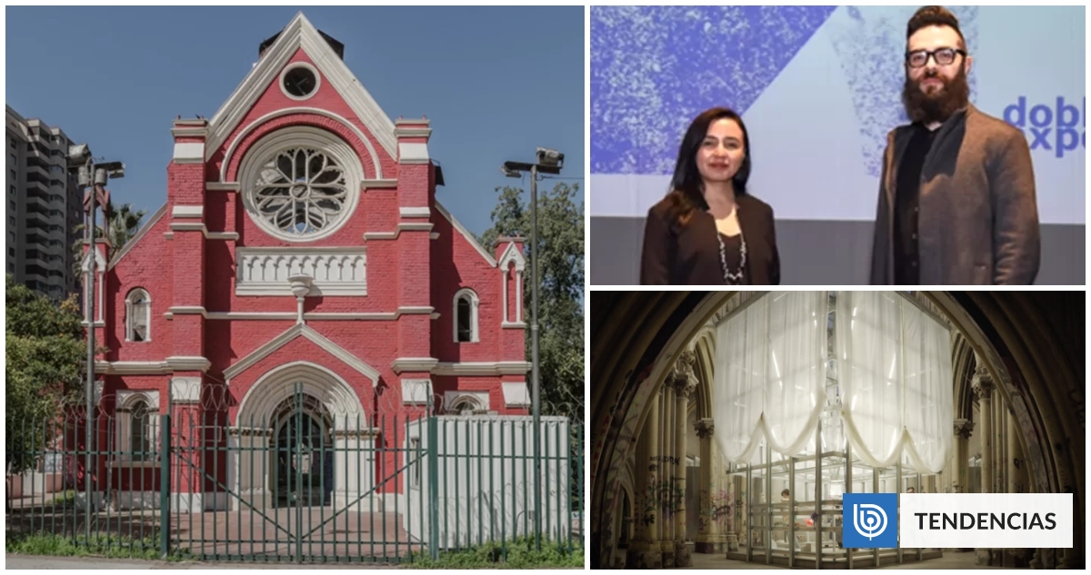 “Muros y arcos neogóticos quedaron como ruinas, dentro de las cuales se construyó el Pabellón de la Doble Exposición, que sirvió como una de las sedes principales. El equipo curatorial encargó el proyecto al arquitecto Iván Bravo, quien diseñó una estructura metálica liviana y desmontable dentro del interior quemado de la iglesia”, acota ArchDaily.