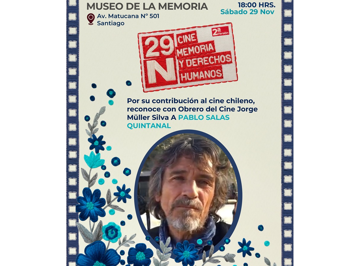 Este 29 de noviembre, entre las 11:30 y hasta las 21.30 horas, habrá reestrenos, estrenos, conversatorios y reconocimientos al obrero y obrera del Cine chileno (Alicia Vega y Pablo Salas en Santiago – MMDH y en Valparaíso – Teatro Municipal: Valeria Sarmiento y Luis Costa del Pozo). A lo anterior se suma una muestra importante de cortometrajes ligadas directamente con el uso de las colecciones del Museo de la Memoria y los Derechos Humanos.