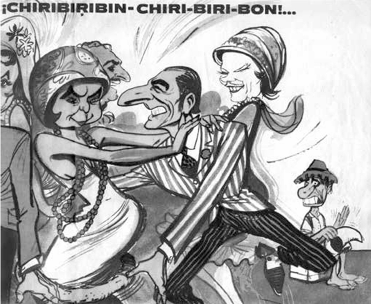 Topaze, No 1.827. Verdejo tamborileando en un cacho en gobierno de Frei Montalva. Fernando Daza,1967. Condoritos y Verdejos, de Jorge Montealegre