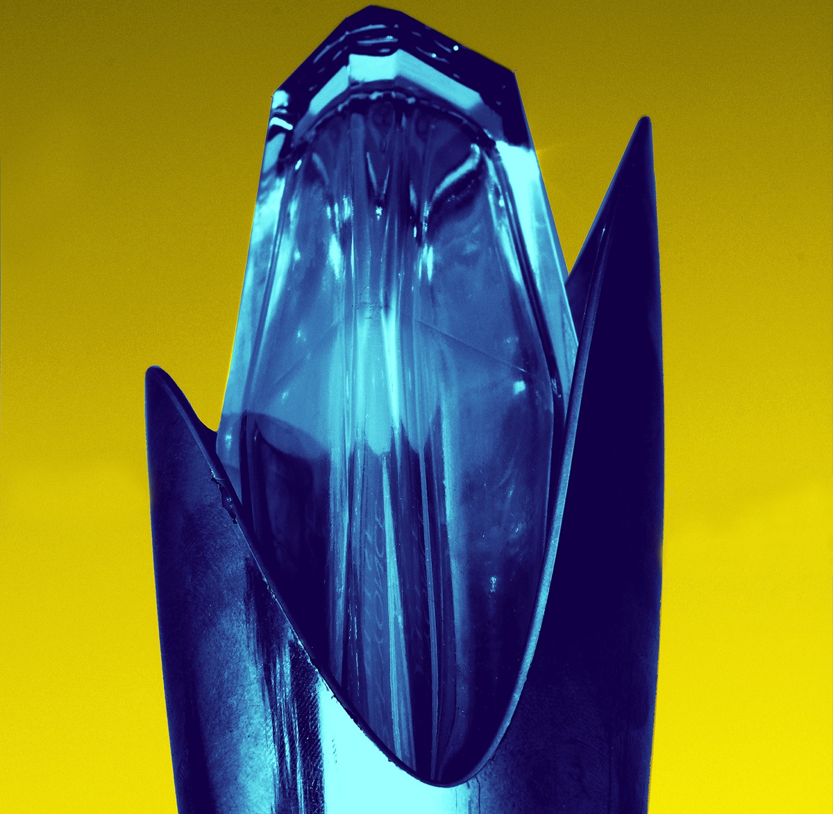 Existe, en esta exposición, una interesante tensión en la cual, a diferencia de sus obras anteriores, donde la pátina del tiempo y el desgaste eran protagonistas,aquí todo brilla. Las superficies son pulcras, reflectantes, casi quirúrgicas/industriales. El uso de colores planos y saturados, como el rojo “furioso” de fondo que recorta la silueta translúcida de un objeto irreconocible, dota a la exposición de una cualidad inevitablemente lúdica. Aquí, podríamos caer en la “tentación” de leer esto como una “esperanza ingenua”, un retorno a la fe en el futuro, propia de la era espacial. Sin embargo, conociendo la agudeza política de Portus, podemos tener certezas de que esa ingenuidad es una estrategia, una ingenuidad consciente, una máscara.