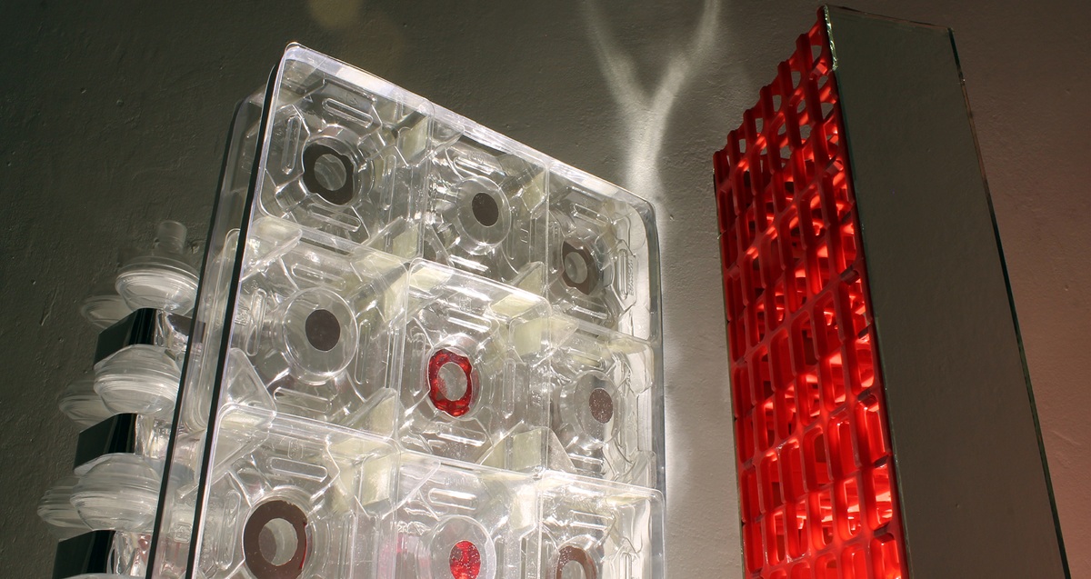 En esta exposición, Leonardo Portus no busca que el cartón parezca concreto envejecido por la lluvia. Ahora busca que el envase de plástico, el blíster de un medicamento o el embalaje de un electrodoméstico (como se aprecia en las imágenes de acrílicos transparentes y cartones moldeados) se nos presente como construcciones modernas monumentales retrofuturista, llegando, en ocasiones, a una recepción abstracta.