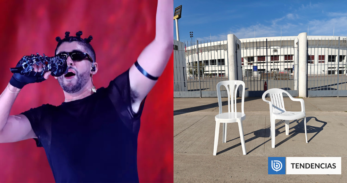 Este fin de semana se reportó la aparición de sillas plásticas de color blanco a las afueras de varios estadios en diferentes países del mundo, incluido Chile, lo que podría ser una pista de la próxima gira de Bad Bunny.
