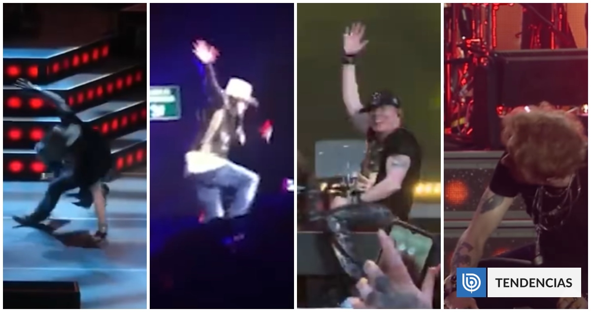 Guns N Roses sorprende a fans con un video de las caídas más memorables de Axl Rose en el escenario, que se viralizó en redes sociales. El clip muestra al vocalista cayendo o a punto de hacerlo en diferentes momentos de los 40 años de la banda, incluyendo su más reciente tropiezo en Bombay, India, durante una presentación de "Sweet Child O’ Mine".