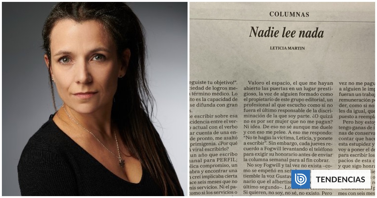 La escritora argentina Leticia Martin protagonizó una llamativa protesta al denunciar públicamente en una columna en el diario Perfil el no pago de sus remuneraciones por su trabajo en el matutino. Bajo el título "Nadie lee nada", reveló la falta de revisión de sus propias columnas y la eliminación temporal de la versión digital de la publicación tras su publicación. Martin expresó su descontento por la falta de pago durante seis meses y la ausencia de aumento salarial, lamentando la discriminación que percibe.