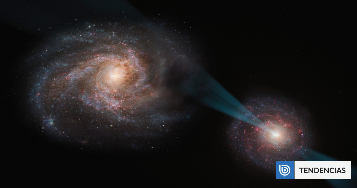 Los científicos llamaron a este fenómeno una “justa cósmica”, ya que pareciera que están peleando con espadas. Esto porque una de ellas posee un cuásar en su interior que expulsa rayos hacia la otra, “perforándola” con una lanza de radiación.