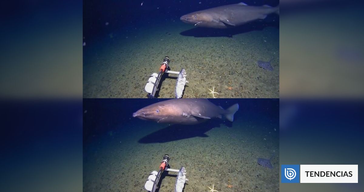El tiburón, identificado como tiburón durmiente, apareció brevemente ante una cámara operada por el Centro de Investigación de las Profundidades Marinas Minderoo-UWA en enero de 2025, cerca de la península Antártica. Pero ahora, decidieron hacer público el registro.