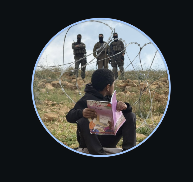 La fotografía, que se viralizó rápidamente, muestra a un menor sosteniendo un libro en lo que aparenta ser un entorno marcado por restricciones militares en la región de Cisjordania.