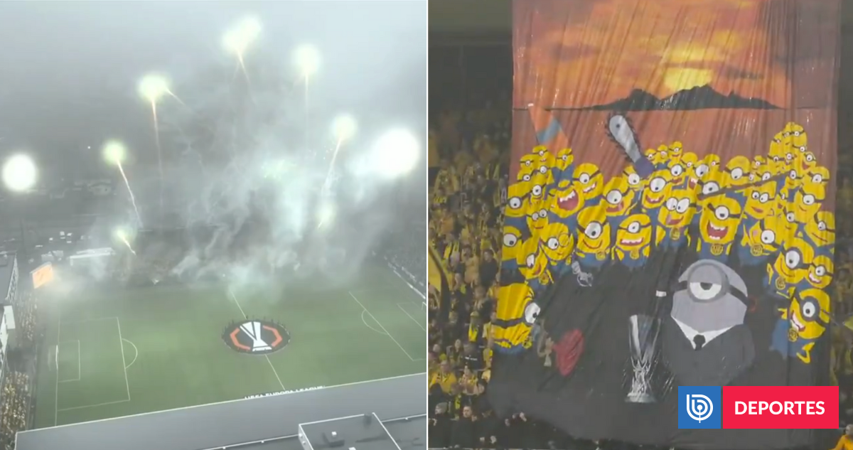 Y resulta que a pesar del resultado adverso en la ida (3 a 1 en contra en Inglaterra), los hinchas del cuadro noruego sueñan con una remontada y para eso, realizaron un vistoso recibimiento con una gran cantidad de pirotecnia y un lienzo gigante con los reconocidos minios, dibujos animados con los mismos colores del equipo.