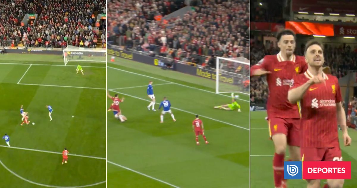 Jota recibió un pase de taco de Luis Díaz, amagó ante dos rivales y envió un derechazo potente que superó la resistencia del arquero Pickford.