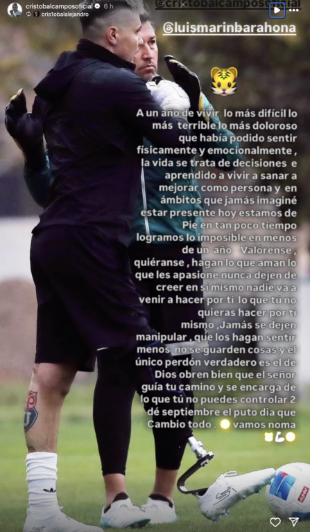 El exarquero chileno Cristóbal Campos conmovió al revelar su lucha contra la depresión tras sufrir un grave accidente automovilístico que le llevó a la amputación de su pie derecho. En un emotivo mensaje compartido en redes sociales un año después del suceso, Campos habló abiertamente de sus dificultades físicas y mentales, enfatizando la importancia de la salud mental y la necesidad de buscar ayuda sin temor.