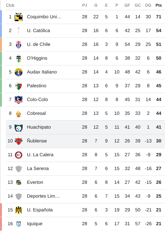 Este resultado le permite a Huachipato igualar a Cobresal y quedar a tres puntos del séptimo, que es Colo Colo, ubicación que cierra los clasificados a Copa Sudamericana.