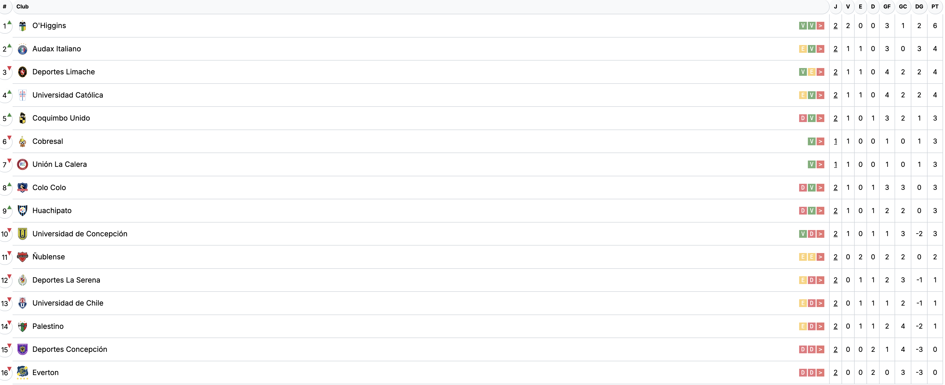 Por su parte, La U se inclinó al mediodía del domingo 8 por 2-1 en su visita a Huachipato, por lo que solo suma un punto en dos fechas y se ubica 13º en la tabla.