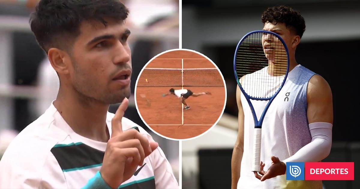 En el arranque del segundo set, con el marcador 30-30 y Alcaraz al servicio, el juez le cedió un punto al español tras una volea que terminó con la raqueta del hispano en la arcilla.