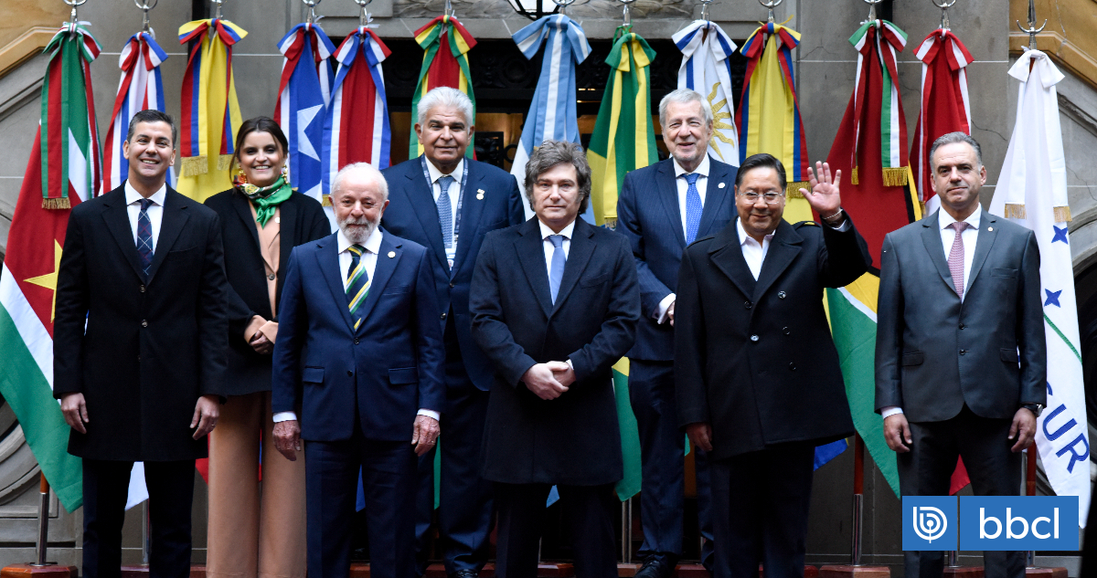 El anfitrión de la cumbre, el argentino Javier Milei, recibió en la sede de la Cancillería a sus homólogos de Brasil, Luiz Inácio Lula da Silva; de Uruguay, Yamandú Orsi; de Paraguay, Santiago Peña; y de Bolivia, Luis Arce.