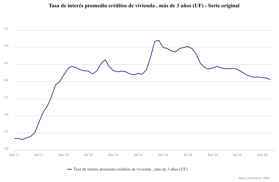 Tasas de interés hipotecarias promedio entre enero de 2021 y marzo de 2026 | Banco Central