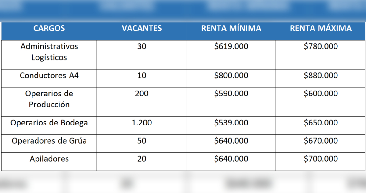 Sobre los puestos, estos ofrecen sueldos que varían entre los $539 mil y $880 mil, dependiendo de la jornada y la especialización que requieran.
