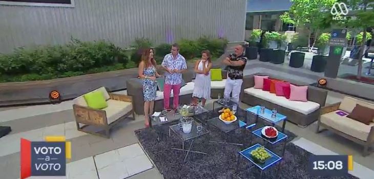 Este programa comenzó a eso de las 15:00 horas, sin embargo, antes que aparecieran los conductores en el set, el espacio mostró una suerte de ‘franja electoral’ con Jara, Viñuela y Constant, y fue en este preciso momento en que se vivió un divertido chascarro que solo algunos notaron.