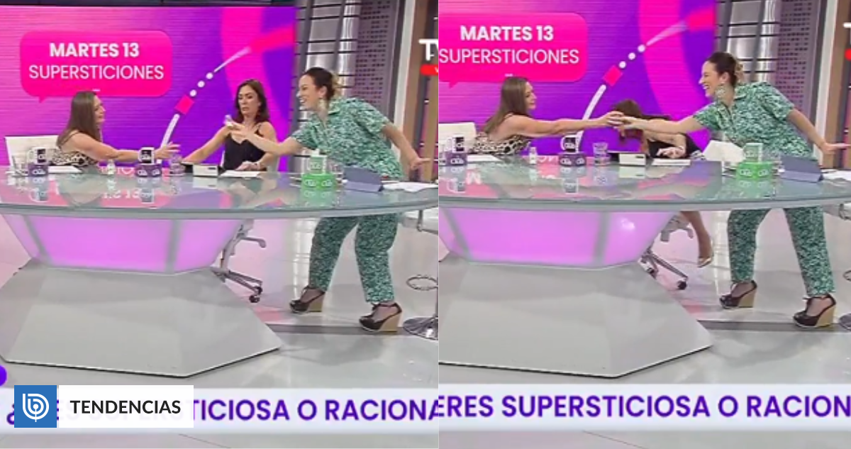 Las panelistas estaban conversando sobre las supersticiones alrededor del martes 13, cuando la comunicadora cayó luego de que sus compañeras se pasaran un salero en la mano.