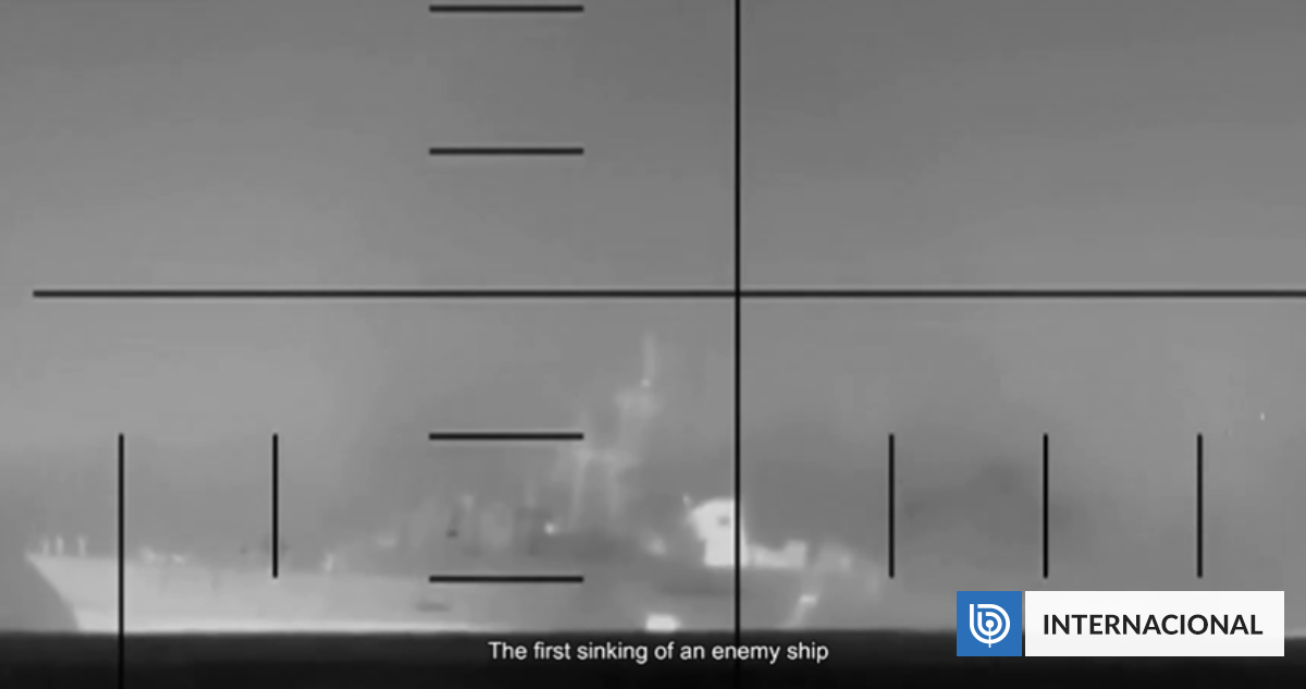 En las imágenes se aprecia una gran explosión que sacude al navío, tras lo cual comienza a hundirse.