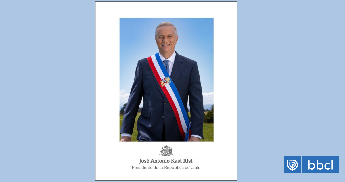 La Oficina del Presidente Electo reveló el retrato oficial de José Antonio Kast, el cual destaca por su simbolismo. La imagen muestra al presidente caminando hacia adelante, dejando atrás la tormenta como metáfora de crisis y adversidad superadas. El cielo de fondo representa unidad y esperanza para Chile. El Escudo Nacional en la banda presidencial refuerza el carácter institucional del cargo.