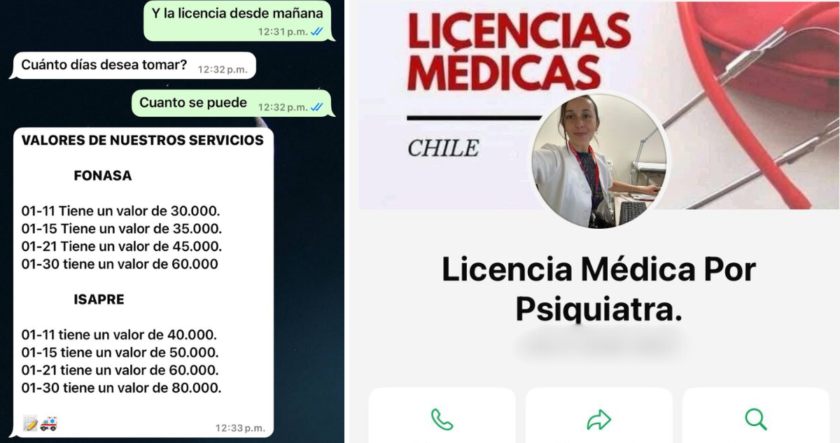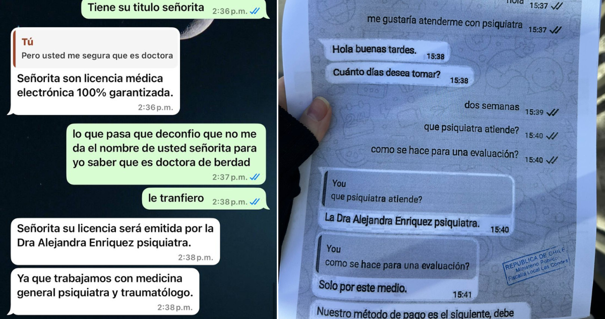 “En mi caso, una niña que se dio cuenta de que fue estafada y me dijo ‘oye, te están suplantando"”, agregó la profesional. Y es que la venta de los permisos médicos, al menos en ese WhatsApp, funcionan como si fueran cualquier producto comercial.