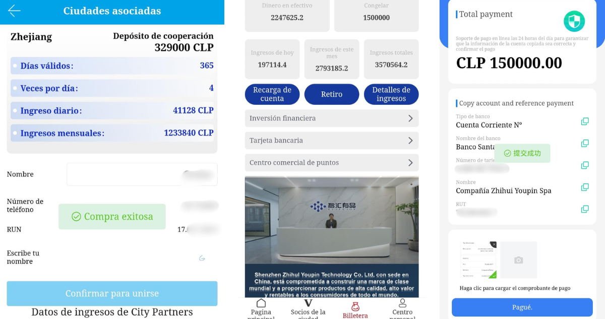 Una supuesta empresa china llamada Zhihui Youpin prometía grandes ganancias con solo 15 minutos de trabajo al día a cambio de una inversión inicial y reclutamiento de personas. La empresa se presentaba como exportadora de productos chilenos al mercado asiático. Operando en Chile por al menos 9 meses, utilizaba un esquema piramidal donde los ingresos dependían de reclutar nuevos miembros. Tras atraer a miles de personas, la empresa desapareció, dejando a cientos de víctimas con pérdidas millonarias. La empresa operaba bajo una fachada y no tenía relación con la compañía china auténtica.