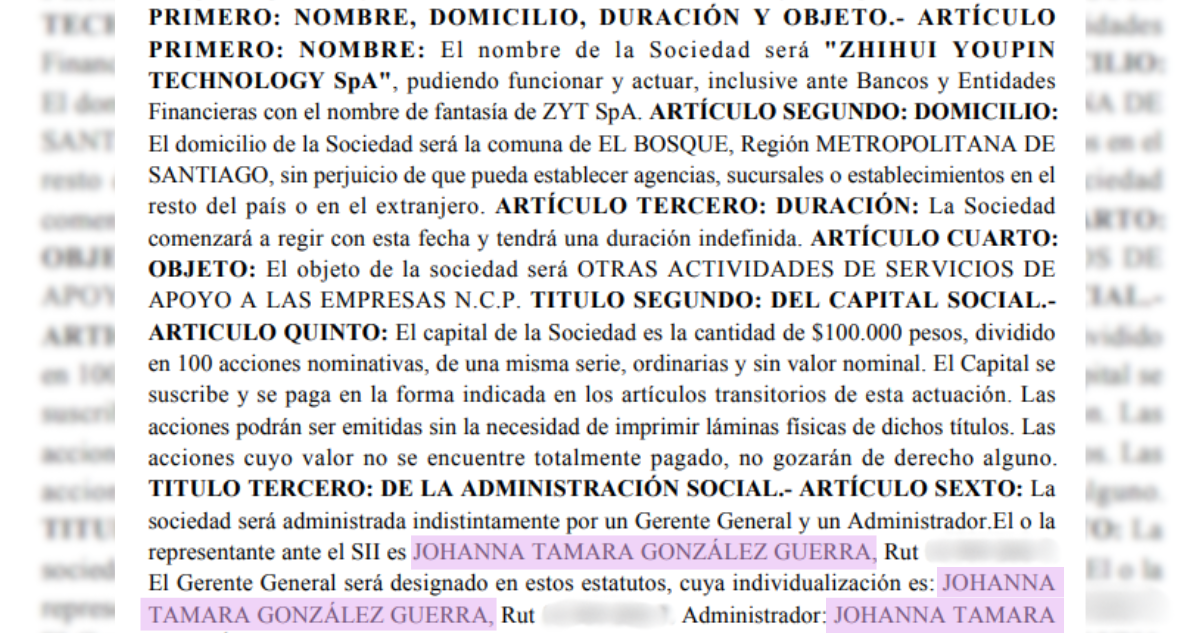El área de denuncias de BBCL pudo corroborar que existe una empresa con ese nombre, basada en China. Sin embargo, no corresponde a las que se montaron en Chile. Según el Registro de Empresas y Sociedades del Ministerio de Economía, una fue constituida el 21 de julio del 2025 con sede en Valdivia, como sociedad anónima, pero otra se creó seis días antes, bajo el nombre de “Zhihui Youpin Technology SpA”. De acuerdo a esta investigación, habría comenzado a operar desde antes.