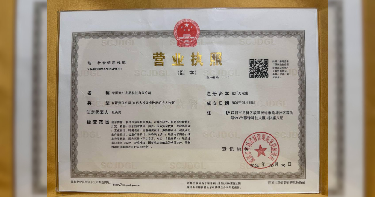 Al otro lado del mundo, en la provincia de Guangdong, la empresa Shenzhen Zhihui Youpin sí existe. Es una firma dedicada al comercio electrónico y distribución de productos en comercios como AliExpress y Shopee.