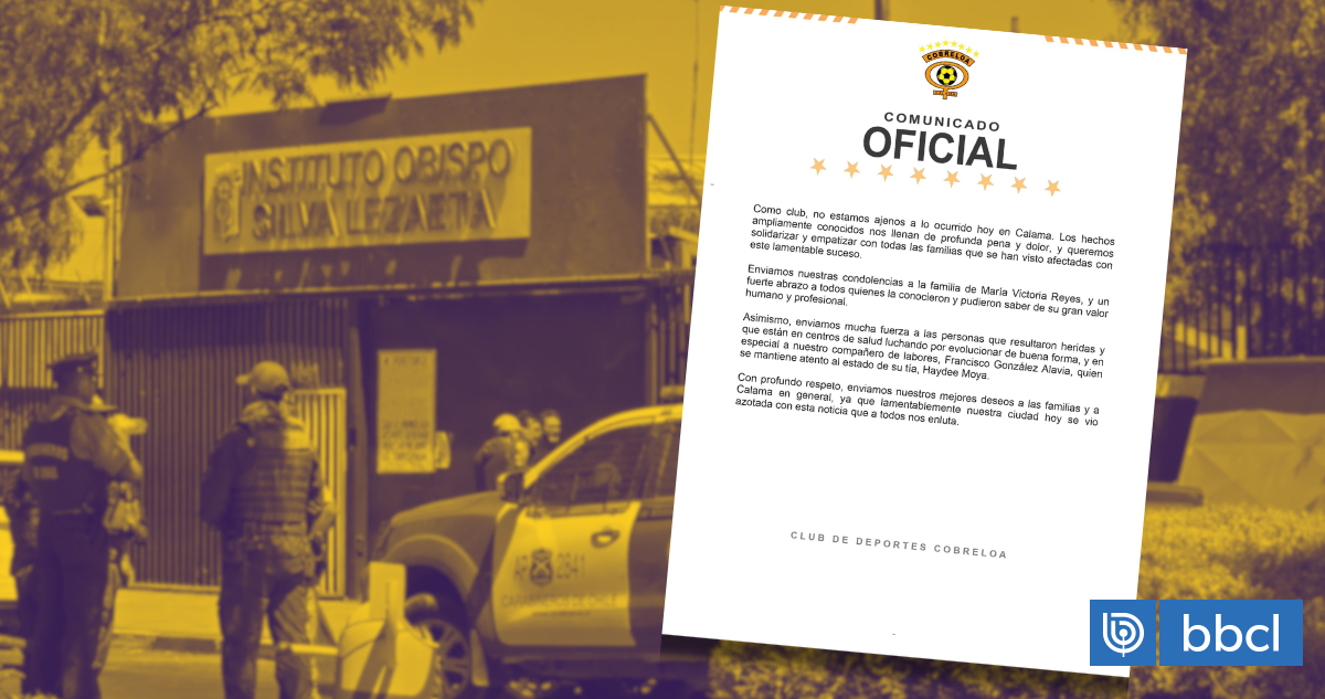 En el mismo mensaje, el club añadió un deseo de contención para quienes sufren las consecuencias del ataque ocurrido en el establecimiento educacional. “Bendiciones y mucha fuerza a las familias que sufren por lo sucedido”, expresó la entidad deportiva, que acompañó un comunicado dirigido a la comunidad calameña.