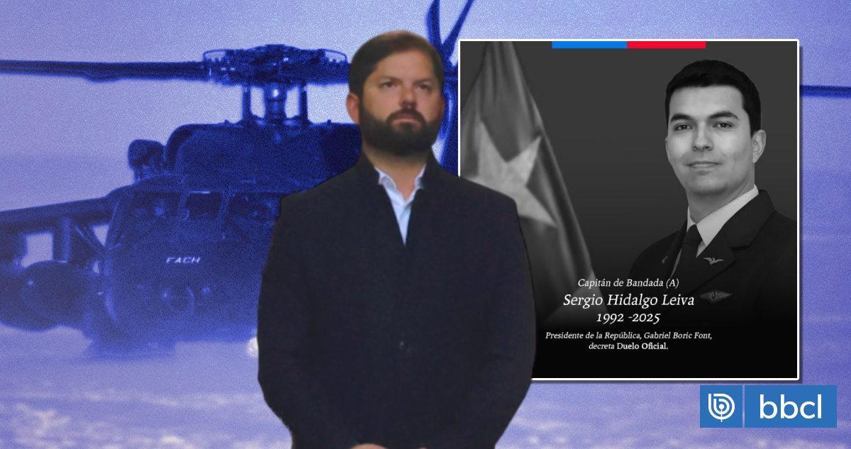 El Presidente de la República, Gabriel Boric, decretó duelo nacional este viernes 17 de octubre. La medida honra la memoria del Capitán de Bandada (A) Sergio Hidalgo Leiva, piloto de la Fuerza Aérea de Chile (FACh) que resultó fallecido en el accidente de un helicóptero institucional en Campos de Hielo Sur, en la Región de Aysén.