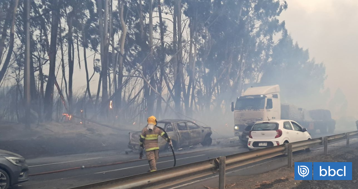 Un incendio forestal de rápida propagación consumió más de 40 hectáreas en la Ruta 5 Sur a la altura de Victoria, La Araucanía, causando la suspensión total del tránsito de sur a norte y cortes intermitentes en sentido contrario. Cinco vehículos, incluyendo un camión, resultaron afectados, con dos de ellos completamente consumidos por las llamas. El fuego se inició por una quema de desechos agrícolas/forestales descontrolada. Conaf, Bomberos, Ejército y Carabineros combatieron el incendio que provocó la declaración de Alerta Roja en Victoria y Ercilla. La directora regional de Conaf mencionó el despliegue de recursos para controlar la emergencia y la realización de una investigación para determinar la causa del incendio.