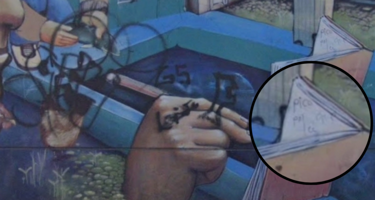 La obra estaba ubicada en una de las paredes externas de las ex dependencias del liceo que lleva el nombre del escritor y que fue creado en 2013 por el Colectivo A la Pinta.
