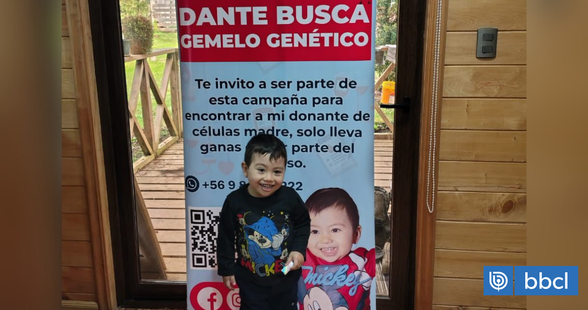 La campaña "Dante busca gemelo genético" cumple un año en Ancud, región de Los Lagos. Dante, de 2 años y con beta talasemia mayor, necesita un donante de células madre compatible. Hasta ahora, más de 3.300 potenciales donantes se han registrado, pero ninguno es adecuado. Dante se somete a tratamientos con transfusiones de sangre y a un procedimiento para eliminar hierro en su organismo, aunque esto le ha causado complicaciones hepáticas. Las muestras para encontrar compatibilidad se envían a Alemania a través de la Fundación DKMS.