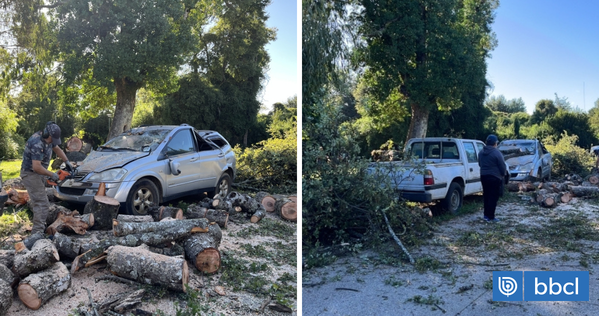 En Valdivia, la caída de un coigüe de 7 metros de alto y 60 cm de diámetro en el sector Portal del Sol dejó tres autos afectados, uno con daño total, y afectó cableado eléctrico y de telecomunicaciones. Vecinos habían alertado a la municipalidad sobre el estado de los árboles sin respuesta previa. La alcaldesa Carla Amtmann reconoció el desafío de mantener el arbolado. La Municipalidad tomará medidas y los afectados evalúan demandar al municipio.