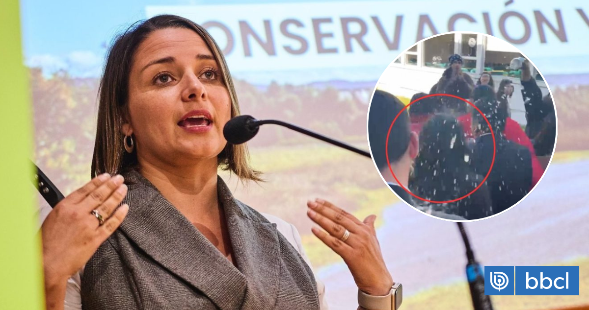 El registro audiovisual de Radio Bío Bío que da cuenta del momento evidencia cómo la secretaria de Estado fue rodeada por manifestantes que también le arrojaron agua, obligando a su equipo a acelerar su salida del lugar.