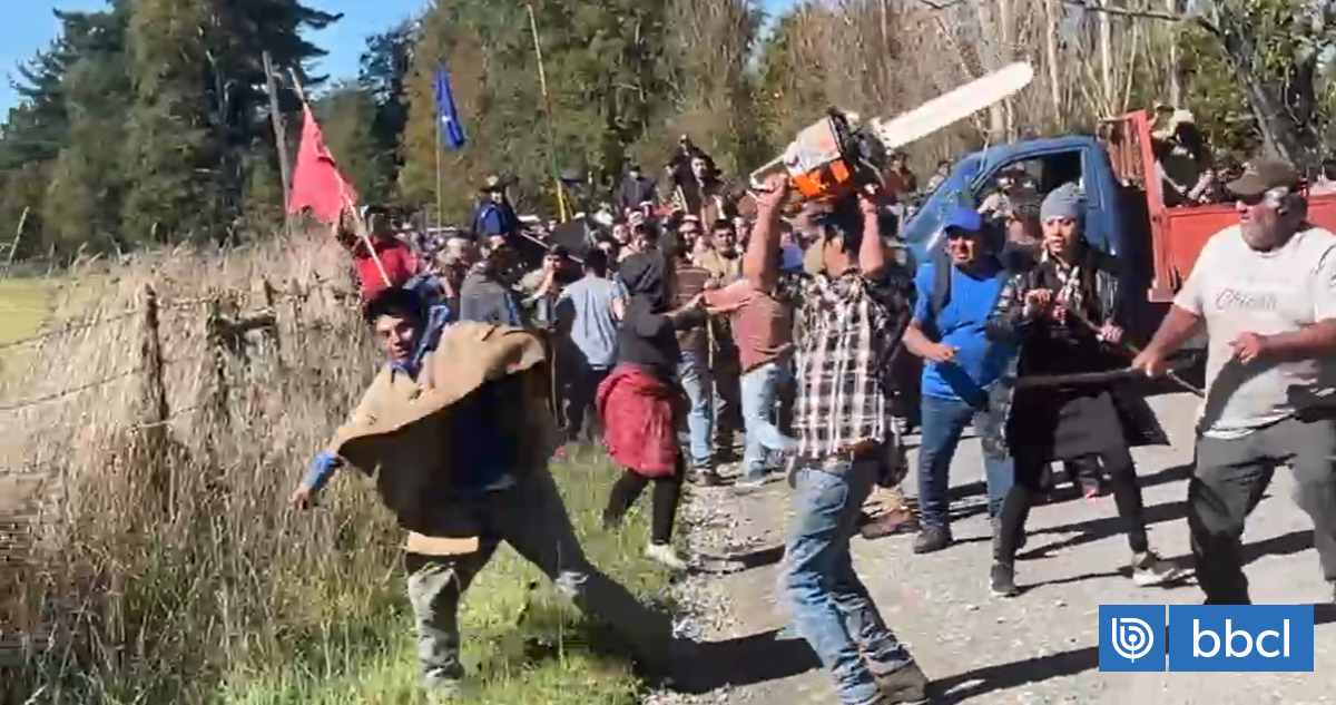 Hay al menos una persona con el rostro ensangrentado producto de las agresiones y, en registros de Radio Bío Bío en la zona, se aprecia que se usaron armas como una motosierra en el enfrentamiento.