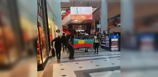 Manifestantes protestan en el interior de mall Marina