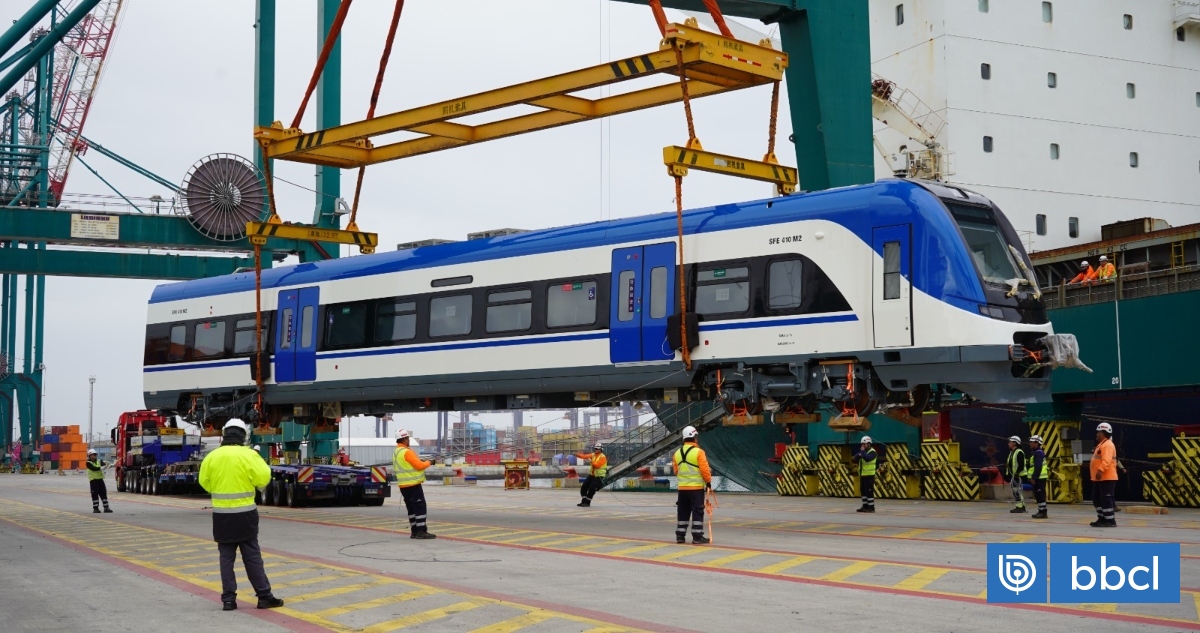 Cinco nuevos trenes, que fueron fabricados en China, desembarcaron este sábado en el Terminal DP World del Puerto de San Antonio, lo que permitirá reforzar la flota de EFE Valparaíso, aumentando en un 20% la capacidad de transporte en las horas punta.