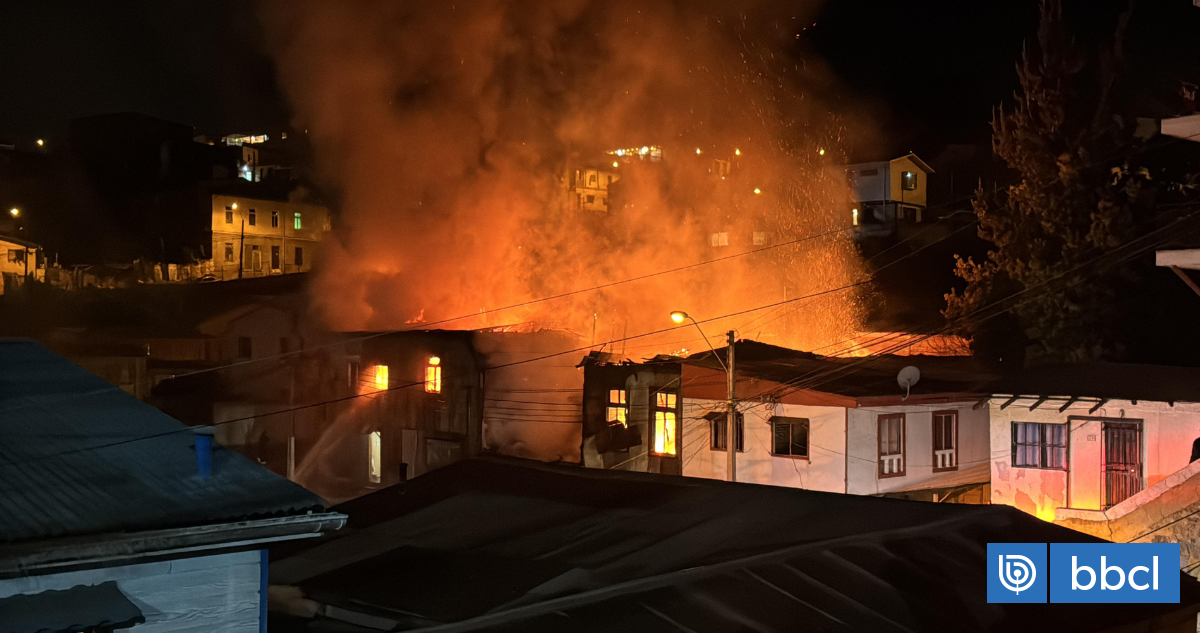Violento incendio destruyó cinco viviendas y dejó 8 personas damnificadas en Cerro Larraín, Valparaíso. Las llamas comenzaron cerca de la 1 de la madrugada en casas de adobe, madera y latas, lo que facilitó su rápida propagación. Un centenar de bomberos trabajaron en el lugar sin reportar heridos, solo las 8 personas damnificadas.